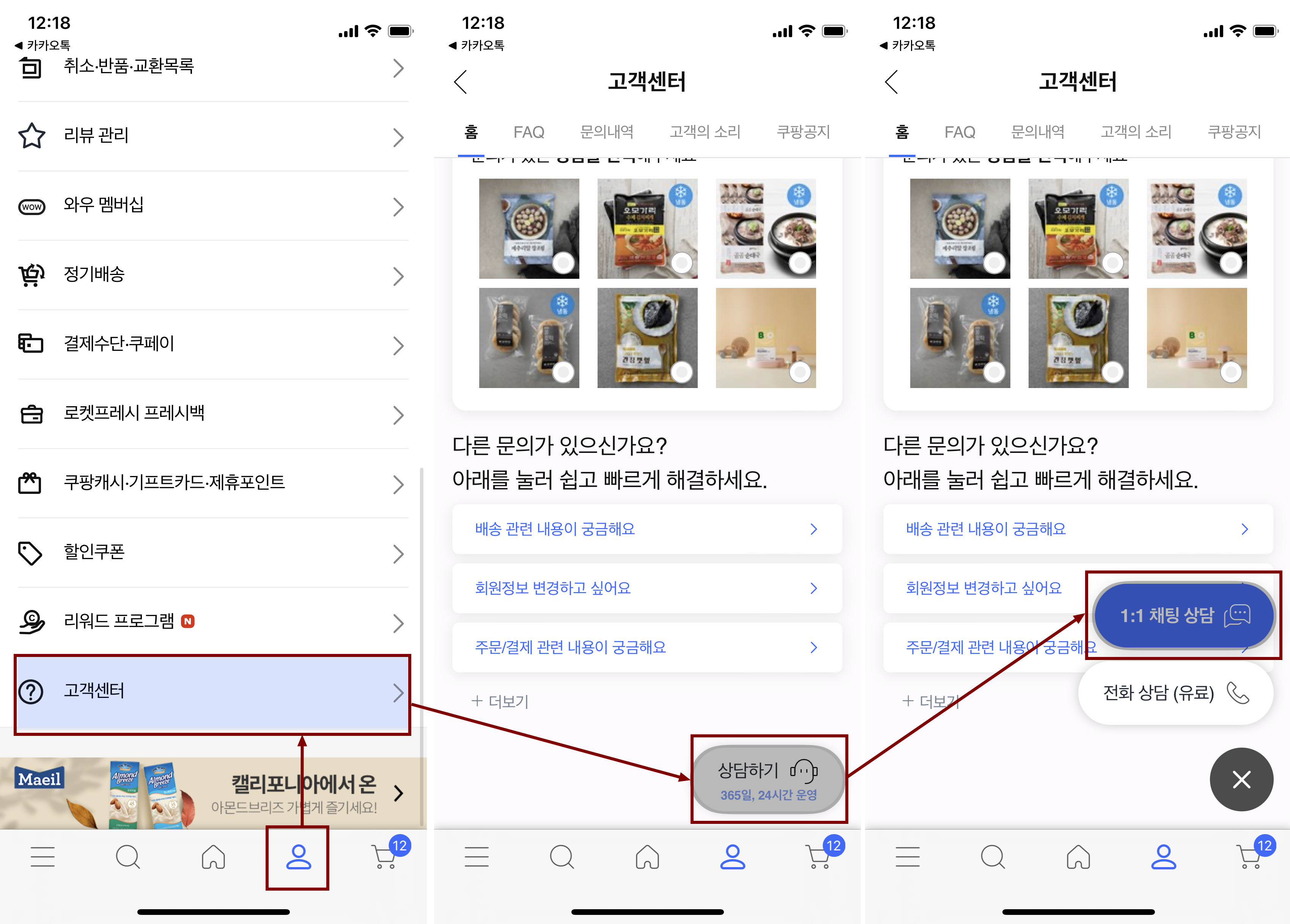 취소 후에도 쿠폰이 보이지 않는다면 쿠팡 고객센터를 통해 1:1 채팅으로 문의 하시면 됩니다.